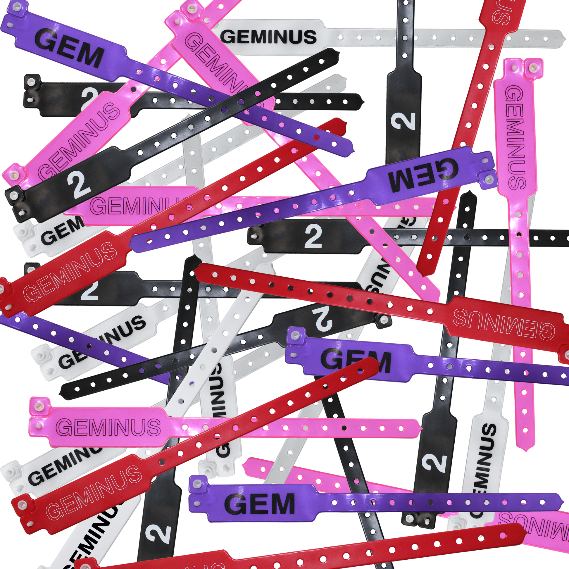 PERMANENCE Bracelet 6 pack. Bracelets modeled after hospital alert bands. Very comfortable and waterproof. Includes a special clear bracelet!!
